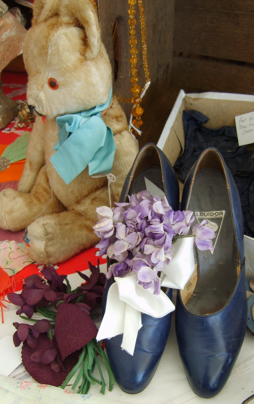 There was a bit of a wedding theme going on with this fantastic 40's headdress, veil and poignant photograph of the bride. In front of it is a French wedding cake decoration from the same period.